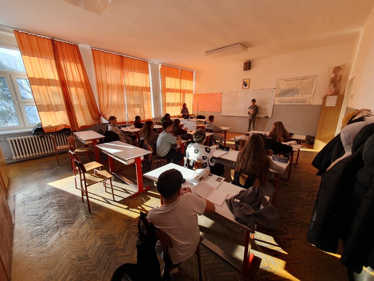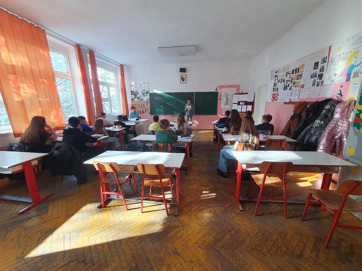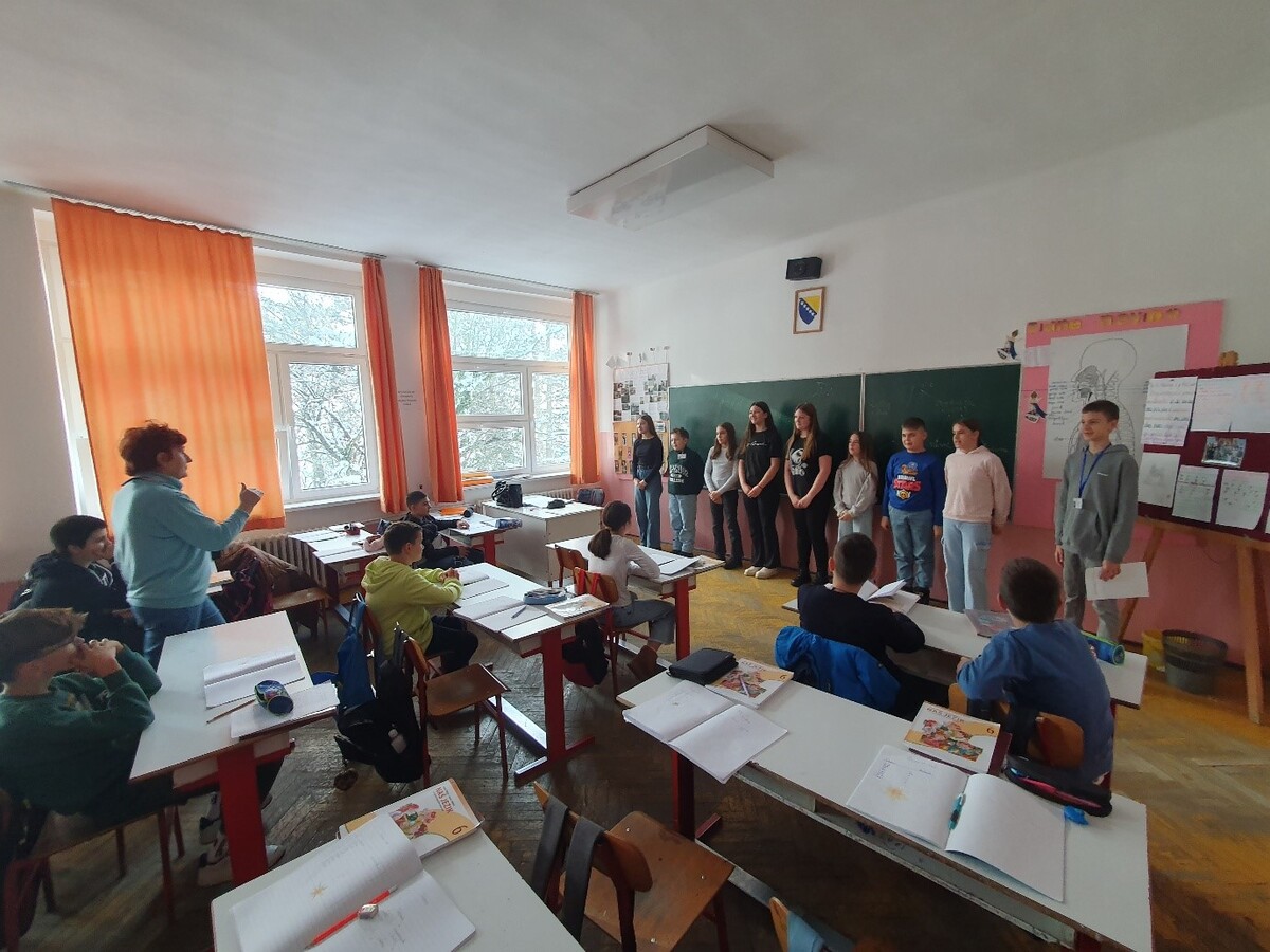 Posebne historijske trenutke sjećanja na Dan državnosti upotpunili su članovi recitatorske sekcije koju vodi nastavnica Begzada Gutić. Naime, nakon što smo posjetili 6 razred u kojem je nastavnica držala čas i nakon čitanja historijskog referata, nastavnica je izvela 8 učenika koji su izveli predivan recital „Bosanske priče“. Divni spoj recitala uz kombinovanje kratkih domoljubnih stihova ostavili su poseban trag na sve učenike i nas kao nastavnike.