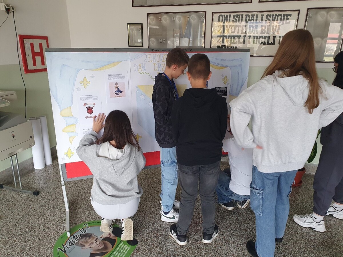 Također, za tu priliku obilježavanja Dana državnosti Bosne i Hercegovine, u holu škole je izvedena aktivnost članova historijske sekcije i dodatne nastave iz historije na način da je postavljena izložba na kojoj su učenici škole i posjetioci mogli vidjeti i naučiti nešto više o Danu državnosti Bosne i Hercegovine i njenom hiljadugodišnjem kontinuitetu.