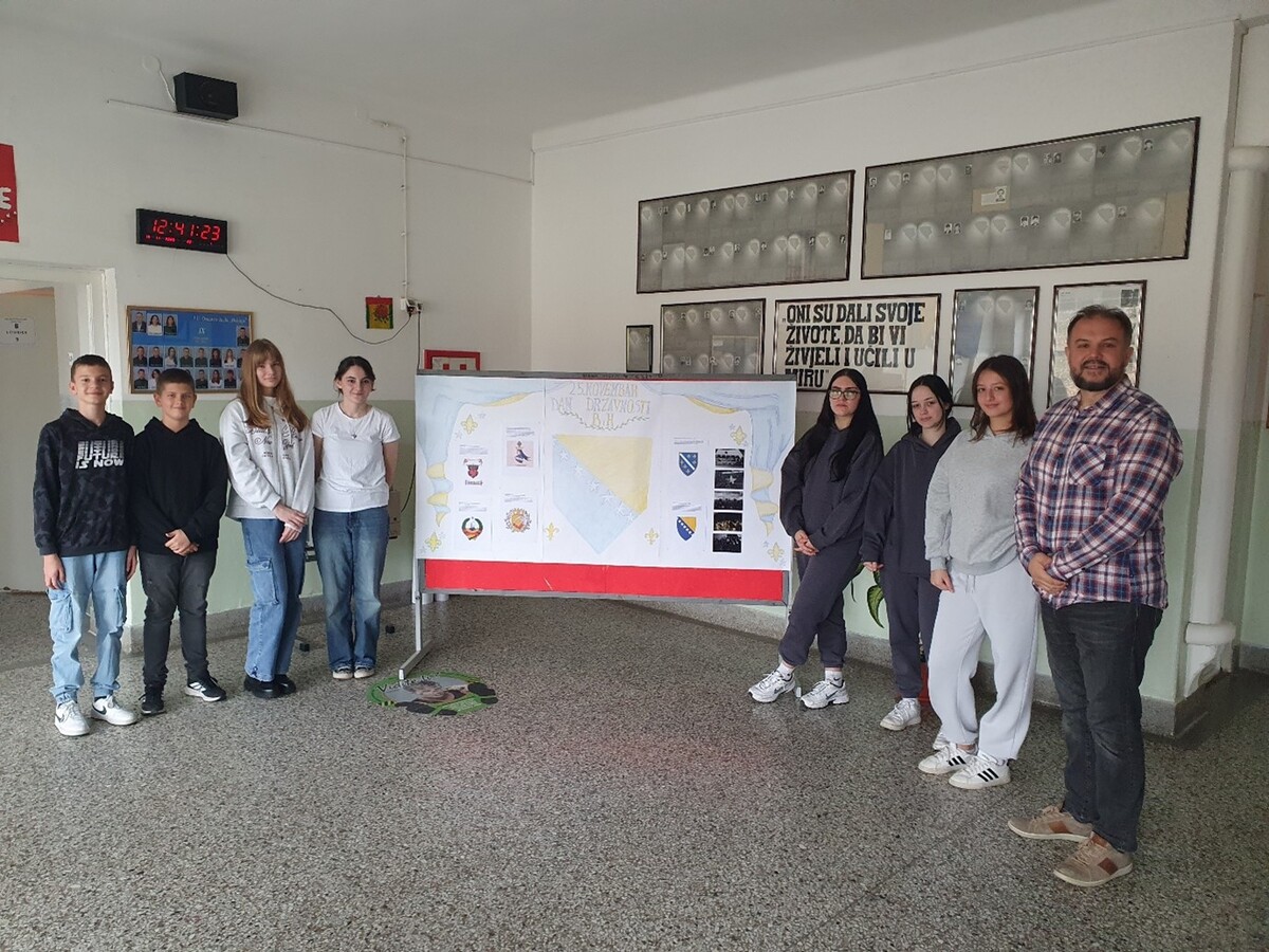 Tako je učenik 7a razreda Fazlić Ensar član dodatne nastave iz predmeta historija spremio historijski referat o važnosti i značaju obilježavanja Dana državnosti Bosne i Hercegovine. Učenike je historijski referat pročitao u svim razredima naše škole. Tom su prilikom naši učenici imali priliku da se u kratkim crtama upoznaju sa historijom kontinuiteta čuvanja i očuvanja državnosti naše domovine koja se kroz historiju skupo plaćala velikim žrtvama.